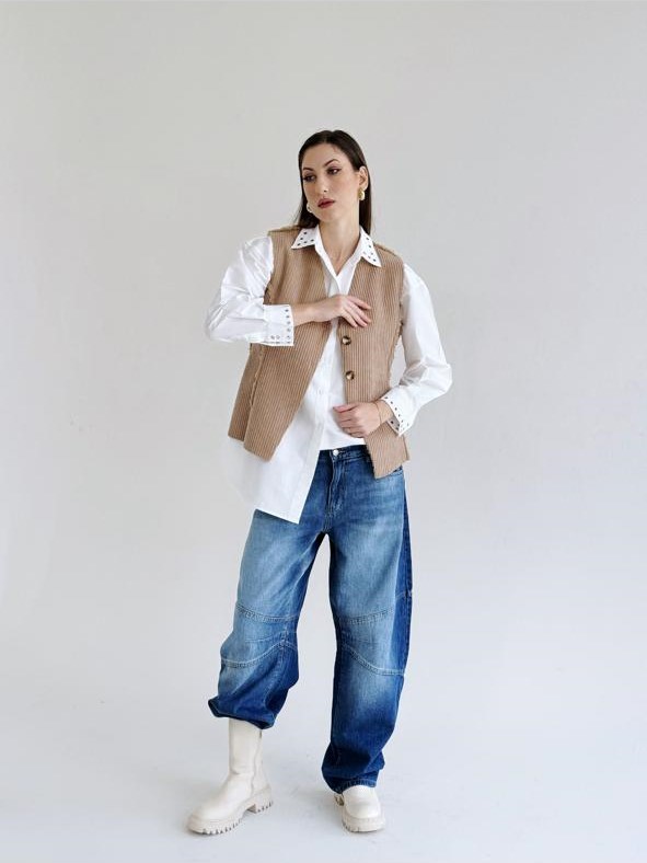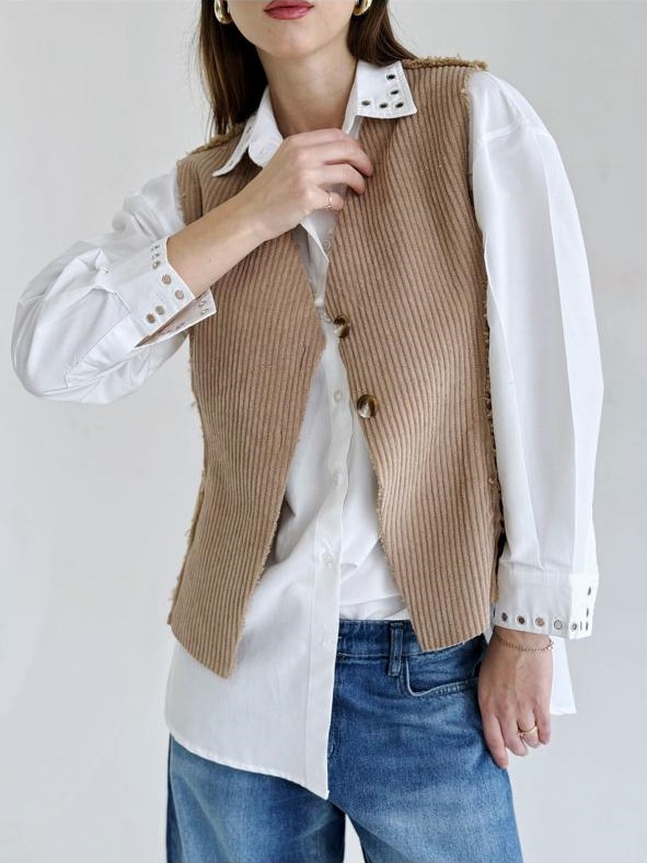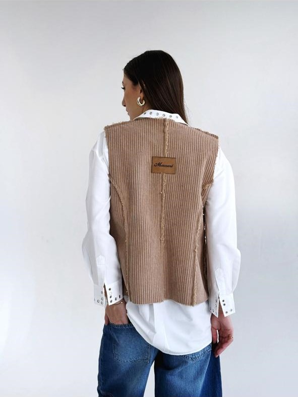 Massari velvet brown vest adds the perfect touch of warmth to any outfit!